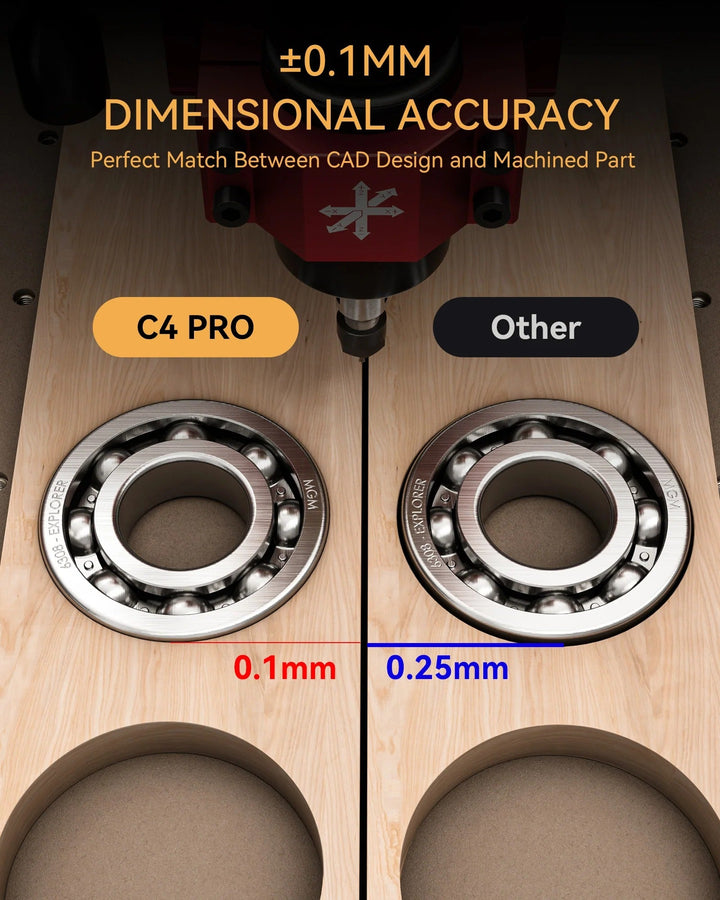 Atomstack C4 Pro CNC da tavolo: la precisione incontra la semplicità. Progettato per maker, artigiani e piccole officine, offre precisione e flessibilità di livello professionale senza complessità. Con un'area di lavoro di 420×420 mm, una struttura rigida e il supporto sia per software G-code che per moduli laser, il C4 Pro consente di lavorare con facilità un'ampia gamma di materiali, dal legno e acrilico alla plastica e ai metalli teneri.