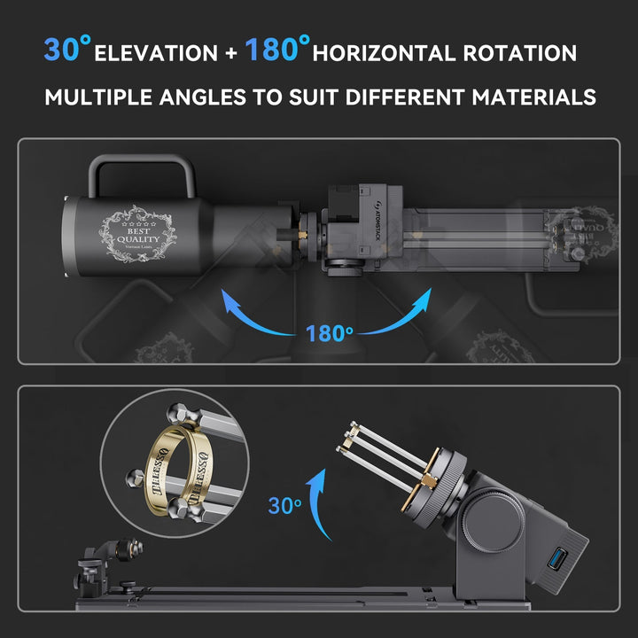 Scenari d’uso ampliati: amplia le tue capacità di incisione oltre le superfici piane, lavorando con facilità su oggetti di forma irregolare.