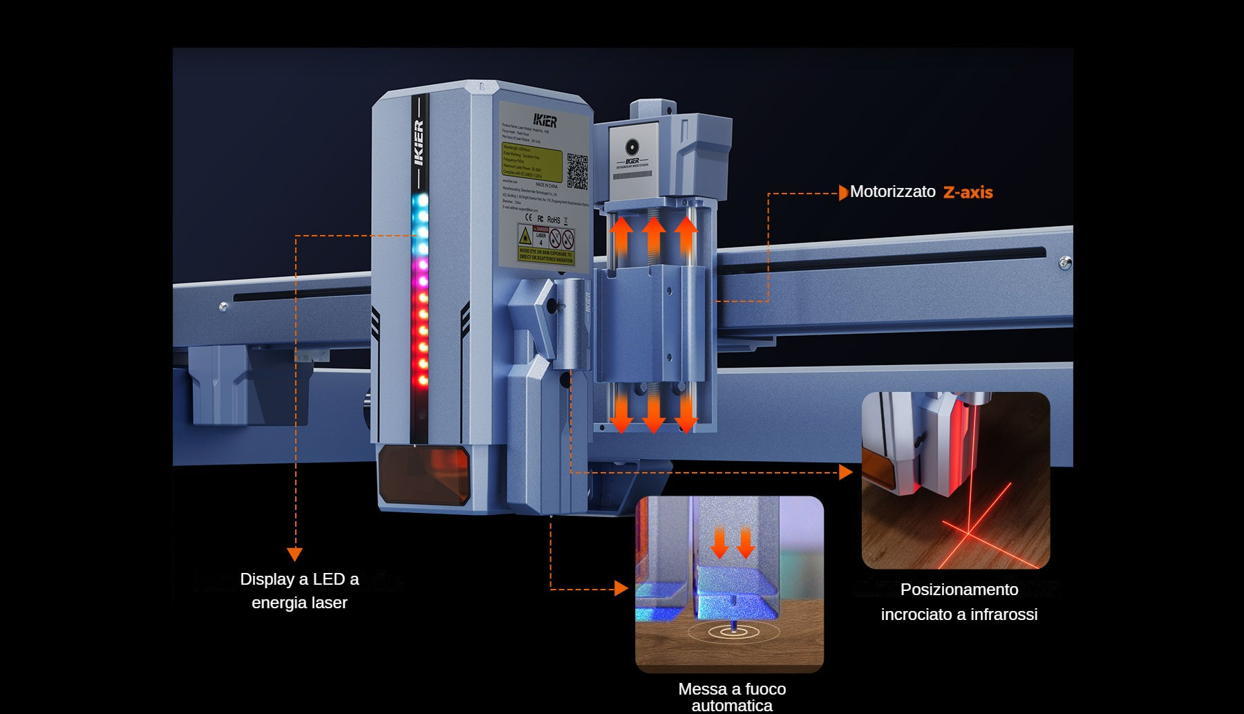 I giorni della messa a fuoco manuale sono finiti. L'asse Z intelligente di IKIER vi aiuta a ottenere la messa a fuoco automatica, misurando automaticamente la distanza dall'oggetto e regolando automaticamente la messa a fuoco.