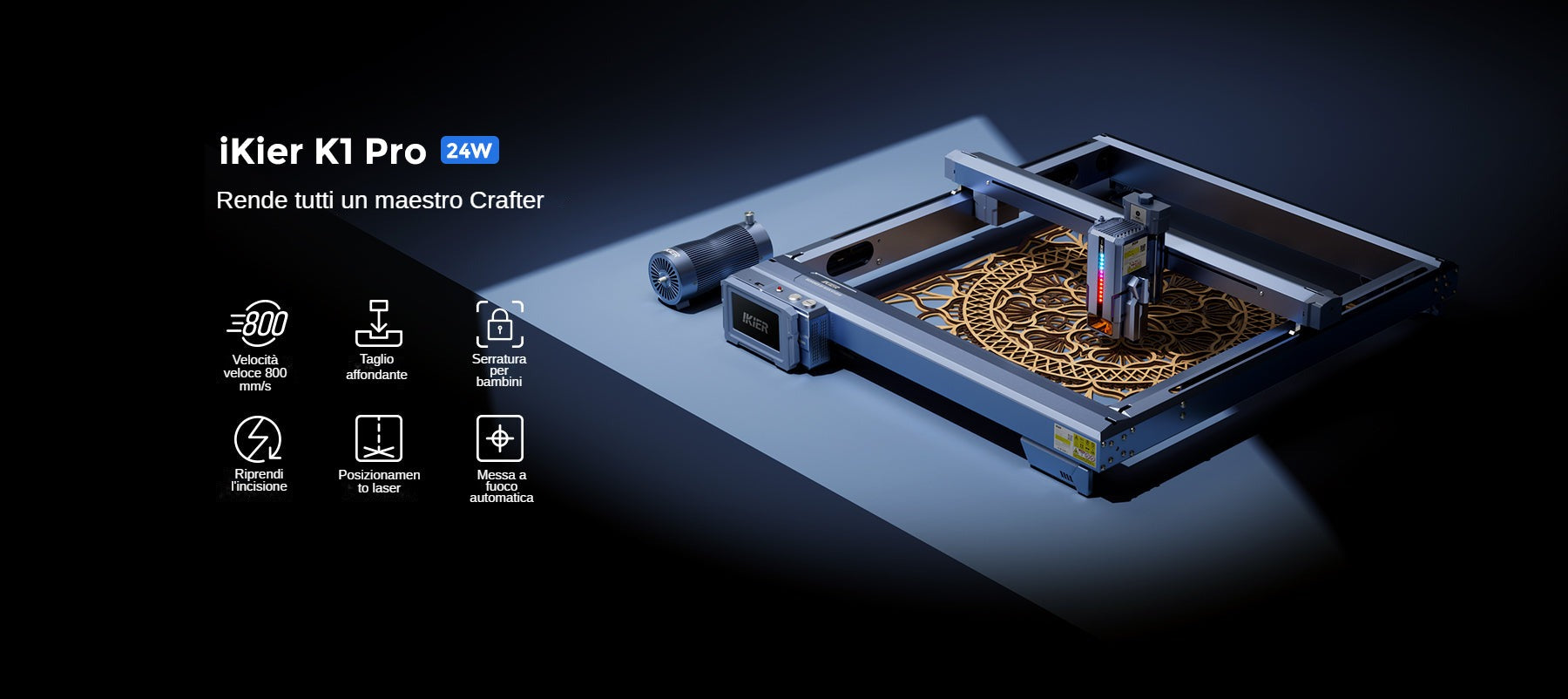 Nel 2023, Atomstack ha lanciato con orgoglio il suo marchio di fascia alta iKier, seguito da un'innovativa release di prodotto che ha aperto l'era delle macchine intelligenti per l'incisione laser 2.0. iKier porta cinque tecnologie nere, che sono: